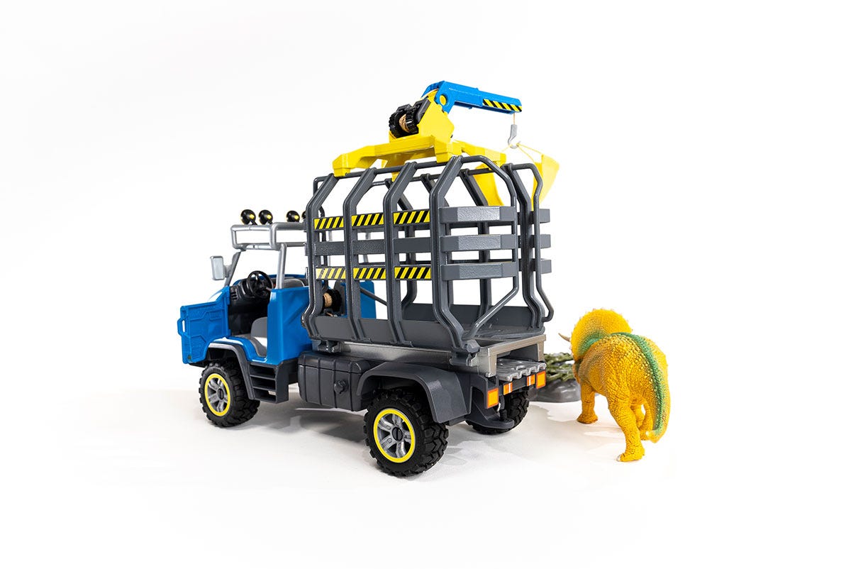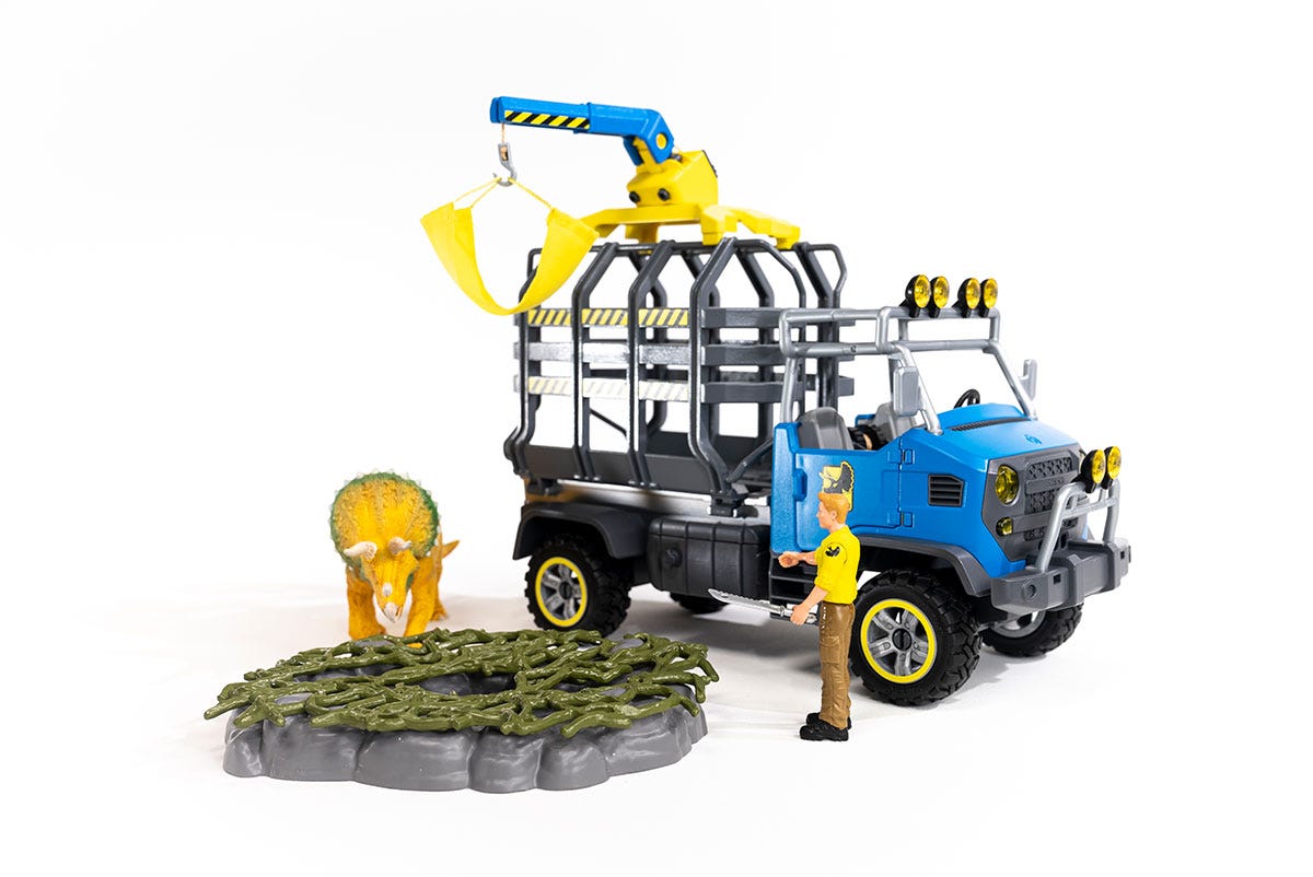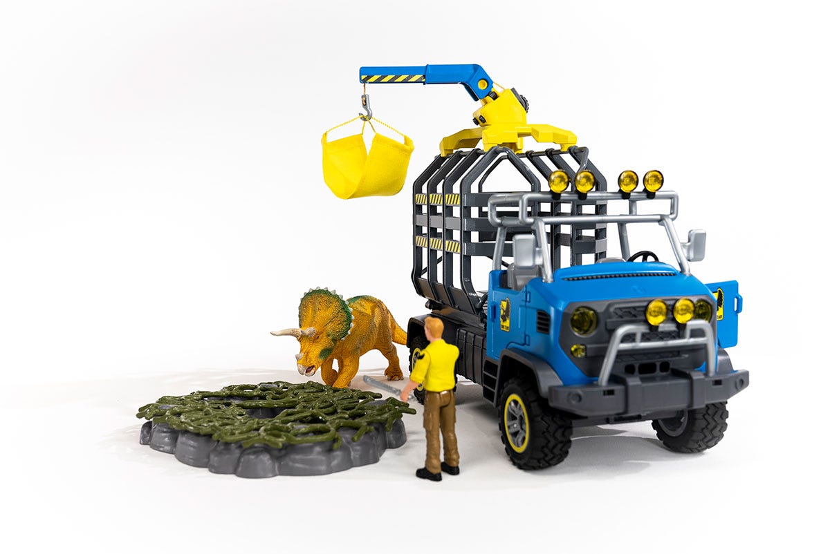 Hurry, dino researcher Luis Colby needs your help! There's a triceratops stuck in the jungle swamp, and he's in danger! The Dino Transport Mission playset puts you in charge of the dinosaur rescue. Climb into the transport truck - the powerful crane can pull the triceratops to safety. Suitable for kids ages 5 and up - part of the Schleich Dinosaurs collection.