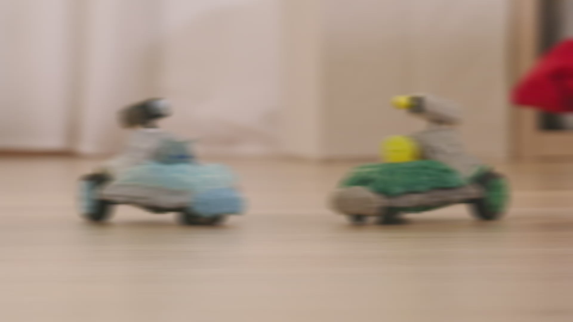 V lávovém vozidle na tryskový pohon je to opravdu horká jízda: Vpředu jsou krystaly, které planou jako oheň, zatímco vzadu je připevněna střelná zbraň. Sem můžeš vložit šipku se špičatým lávovým krystalem. Zbraň se taky dokáže otáčet! Červená figurka Mini Creature za volantem ji může vystřelit libovolným směrem.