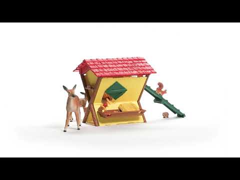 Co najde laň a její sladké mládě v krmelci? Zatímco si pochutnávají na obědě, zastavili se u nich na svačinu také veverka a ježek. Díky odnímatelné stříšce se můžeš ihned přesvědčit, jestli je v krmelci ještě dost potravy a sena pro všechny. Aby se k potravě dostala i ta nejmenší zvířátka, je tu dokonce rampa!
