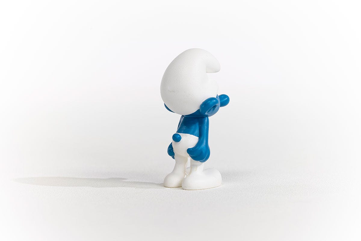 Ech… Šmoula Mrzout z kolekce schleich® Šmoulové™ si myslí, že všechno je hloupé. Samozřejmě kromě toho, když je dárkem k tvým narozeninám právě on.